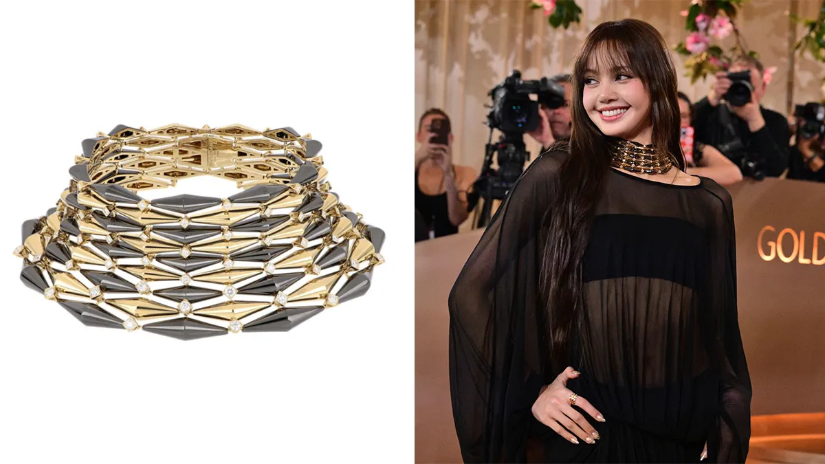 As it turns out, that night was the worldwide unveiling of Bulgari Eternal, the jewelry house’s reimagining of archival designs, and Bulgari Global Ambassador Lisa’s choker was from the launch of its first chapter, the Vimini collection. Featuring a woven pattern—”vimini” means “wicker” in Italian, an illusion cleverly executed by segments that taper at the ends and, in some pieces, linked together by round, pavé-set diamonds—the collection is inspired by a bracelet made by the maison in the 1940s. What’s even more unexpected is the use of an innovative Diamond-Like Carbon (DLC) coating over gold, giving the design a bit of an edge.
