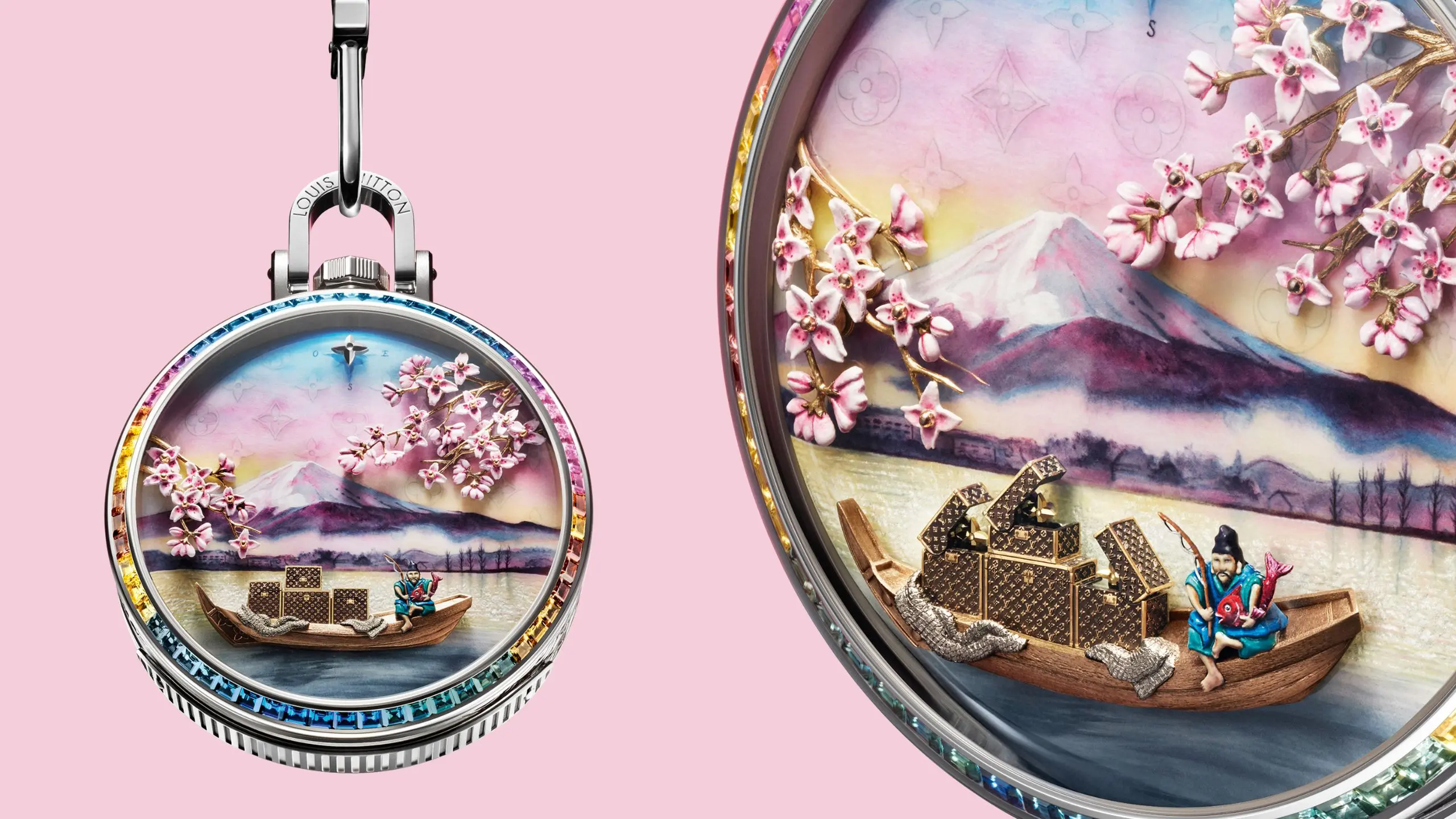 For most of modern history, the pocket watch was the original personal timekeeper. Gentlemen carried them in waistcoats, retrieving them with a practiced gesture, but soon enough, the wristwatch eventually displaced it—first through convenience, later through habit. Watch the video: In haute horlogerie, however, the pocket watch survives, though more as an heirloom or antique curiosity. A small circle of watchmakers has continued to explore the format, maybe due to a little bit of nostalgia, but also because it offers something modern wristwatches rarely can: space. With a larger case diameter and fewer ergonomic constraints, it allows the integration of complications and artistic flourishes that would be impractical—or simply invisible—on the wrist. (Historically, this is why many of the most complicated watches ever made were pocket watches.) Louis Vuitton’s Escale au Mont Fuji belongs squarely in that tradition. The piece transforms the format into something closer to a moving tableau:..